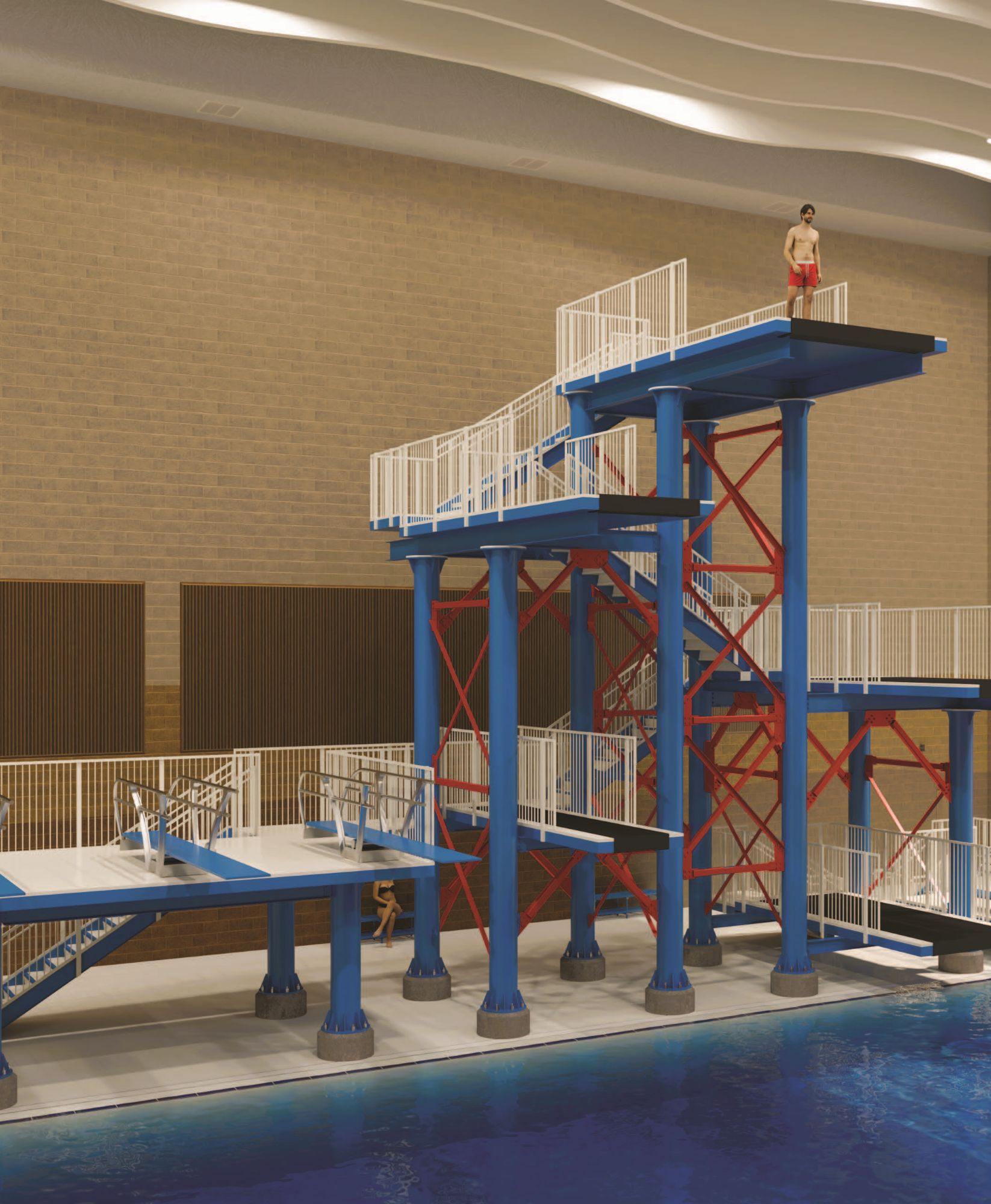 Our Steel & FRP Dive Platforms are fully customizable, so your structure can show off your school pride with every dive!