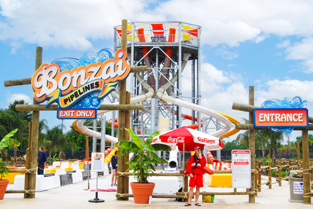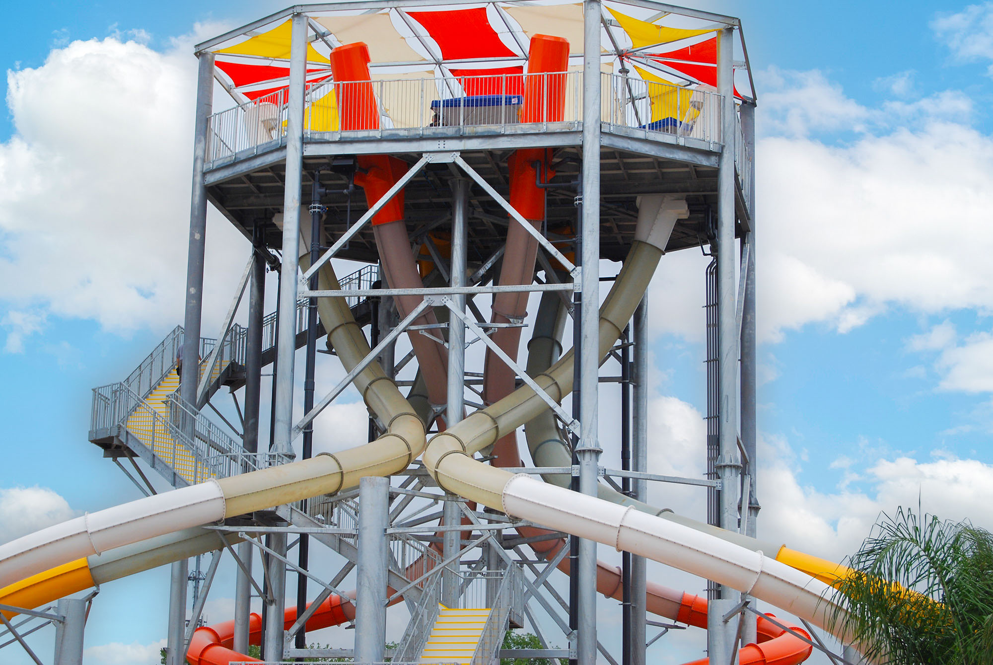 Prepare for launch. Six slides. Six launch modules. Over six stories tall. DownUnder™ water slide is an unprecedented attraction with six individual ‘DrenalineDrop™ launch modules arranged around the perimeter of the platform, riders watch each other while anticipating their turn.