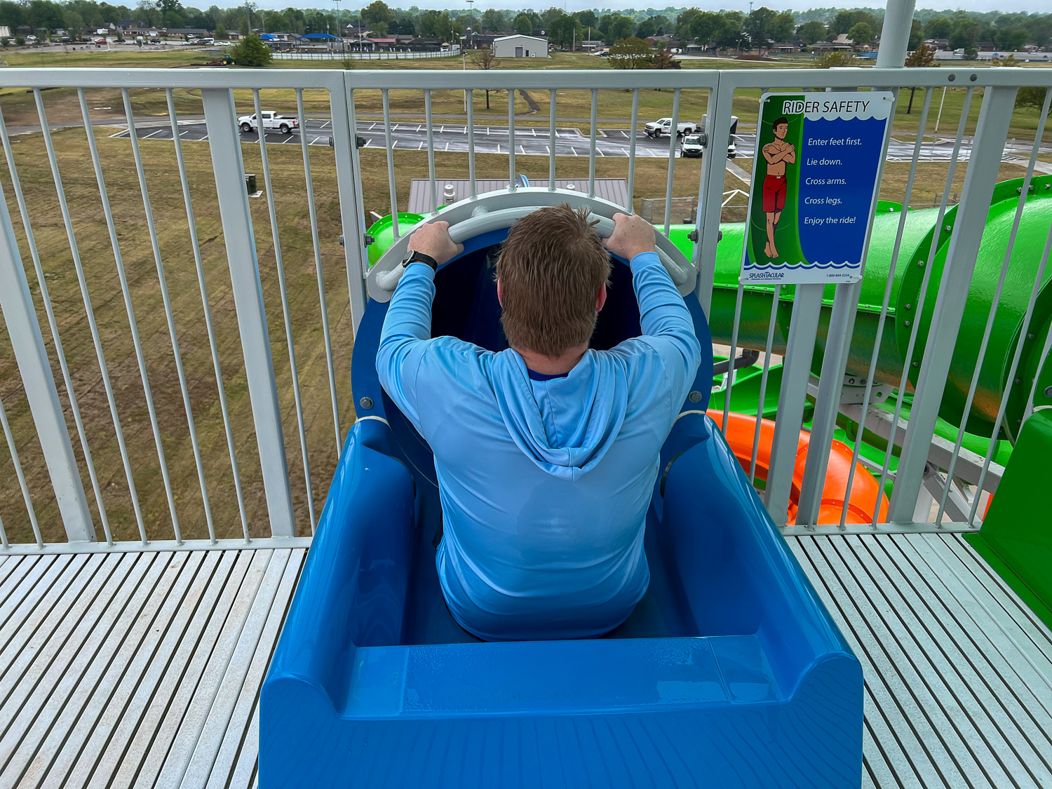 Then the same team member will ride the slide multiple times until the water pressure is set correctly