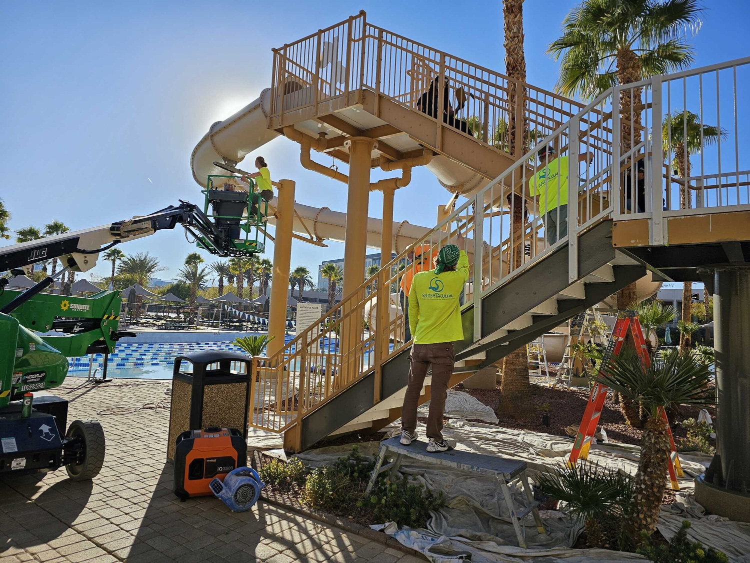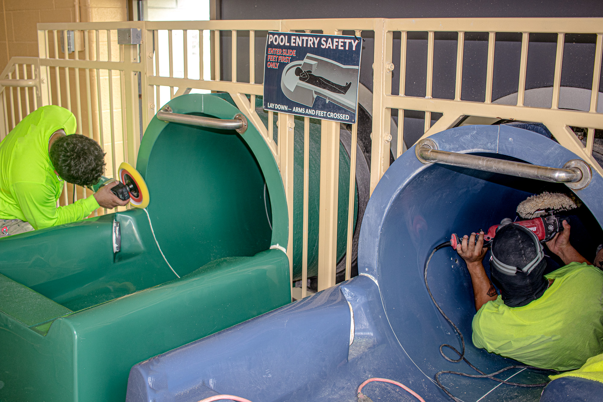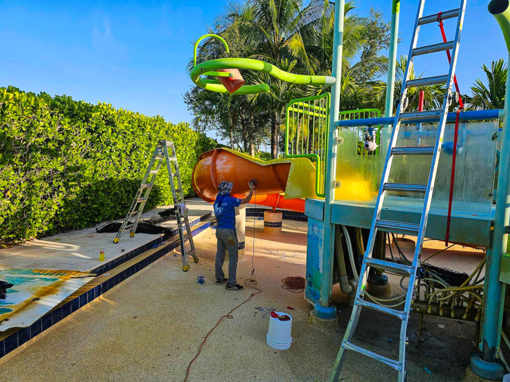 Our team meets with you to understand your needs and performs a detailed inspection to assess the condition of your water slide(s), play structures, or features, identifying any areas that require attention.